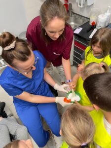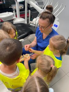 Do naszego gabinetu zawitały dzieci, którym z przyjemnością zaprezentowaliśmy, na czym polega praca stomatologa. Opowiedzieliśmy o ciekawostkach z codziennej praktyki, obaliliśmy popularne mity i – co najważniejsze – pomogliśmy oswoić strach przed wizytą u dentysty.
